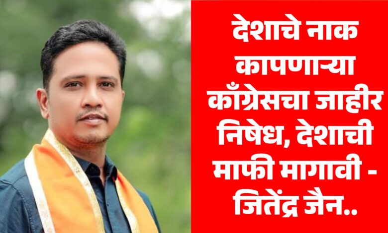ЁЯЪи рдмреНрд░реЗрдХрд┐рдВрдЧ: рджреЗрд╢рд╛рдЪреЗ рдирд╛рдХ рдХрд╛рдкрдгрд╛рд▒реНрдпрд╛ рдХрд╛рдБрдЧреНрд░реЗрд╕рдЪрд╛ рдЬрд╛рд╣реАрд░ рдирд┐рд╖реЗрдз, рджреЗрд╢рд╛рдЪреА рдорд╛рдлреА рдорд╛рдЧрд╛рд╡реА – рдЬрд┐рддреЗрдВрджреНрд░ рдЬреИрди..