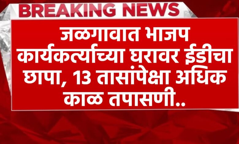 ЁЯТе рдЬрд│рдЧрд╛рд╡ рдмреНрд░реЗрдХрд┐рдВрдЧ : рднрд╛рдЬрдк рдХрд╛рд░реНрдпрдХрд░реНрддреНрдпрд╛рдЪреНрдпрд╛ рдШрд░рд╛рд╡рд░ рдИрдбреАрдЪрд╛ рдЫрд╛рдкрд╛, резрей рддрд╛рд╕рд╛рдВрдкреЗрдХреНрд╖рд╛ рдЕрдзрд┐рдХ рдХрд╛рд│ рддрдкрд╛рд╕рдгреА..