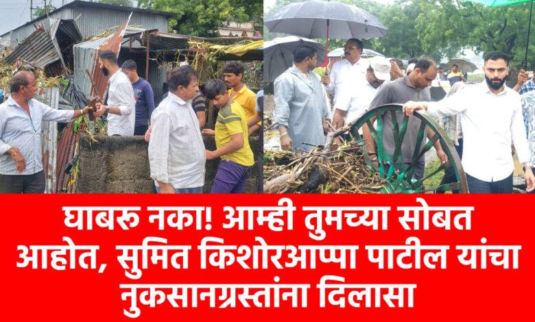 рдпрд╛ рдЧрдВрднреАрд░ рдкрд░рд┐рд╕реНрдерд┐рддреАрдЪреА рдЖрдорджрд╛рд░ рдХрд┐рд╢реЛрд░ рдкрд╛рдЯреАрд▓ рдпрд╛рдВрдЪреЗ рд╕реБрдкреБрддреНрд░ рдпреБрд╡рд╛ рдиреЗрддреЗ рд╕реБрдорд┐рдд рдХрд┐рд╢реЛрд░ рдЖрдкреНрдкрд╛ рдкрд╛рдЯреАрд▓ рдпрд╛рдВрдиреА рдкреВрд░рдЧреНрд░рд╕реНрдд рдЧрд╛рд╡рд╛рдВрдЪрд╛ рджреМрд░рд╛ рдХрд░реВрди рдкреНрд░рддреНрдпрдХреНрд╖ рдкрд╛рд╣рдгреА рдХреЗрд▓реА. рддреНрдпрд╛рдВрдиреА рдЧрд╛рд╡рдХрд▒реНрдпрд╛рдВрд╢реА рд╕рдВрд╡рд╛рдж рд╕рд╛рдзреВрди рдиреБрдХрд╕рд╛рдирдЧреНрд░рд╕реНрдд рд╢реЗрддрдХрд░реА рд╡ рдорд╣рд┐рд▓рд╛рдВрдЪреА рд╡рд┐рдЪрд╛рд░рдкреВрд╕ рдХреЗрд▓реА. рддрд╕реЗрдЪ рд╢рд╛рд╕рдирд╛рдХрдбреВрди рддрд╛рддрдбреАрдиреЗ рдорджрдд рдорд┐рд│рд╡реВрди рджреЗрдгреНрдпрд╛рдЪреЗ рдЖрд╢реНрд╡рд╛рд╕рди рджрд┐рд▓реЗ. рдпрд╛ рджреМрд▒реНрдпрд╛рдд рдЬрд┐рд▓реНрд╣рд╛рдкреНрд░рдореБрдЦ рд░рд╛рд╡рд╕рд╛рд╣реЗрдм рдкрд╛рдЯреАрд▓, рддрд╣рд╕реАрд▓рджрд╛рд░ рд╡рд┐рдЬрдп рдмрдирд╕реЛрдбреЗ, рдЙрдкрдЬрд┐рд▓реНрд╣рд╛рдкреНрд░рдореБрдЦ рдХрд┐рд╢реЛрд░ рдмрд╛рд░рд╛рд╡рдХрд░, рд╢рд╣рд░ рдкреНрд░рдореБрдЦ рд╕реБрдорд┐рдд рд╕рд╛рд╡рдВрдд, рддрд╕реЗрдЪ рд╢реЗрддрдХрд░реА рд╕реЗрдирд╛ рдкреНрд░рдореБрдЦ рд╕реБрдиреАрд▓ рдкрд╛рдЯреАрд▓ рдЖрджреА рдорд╛рдиреНрдпрд╡рд░ рдЙрдкрд╕реНрдерд┐рдд рд╣реЛрддреЗ.