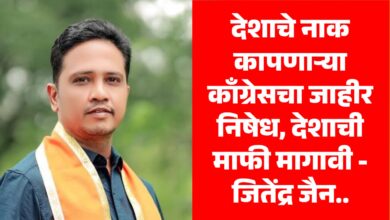 🚨 ब्रेकिंग: देशाचे नाक कापणाऱ्या काँग्रेसचा जाहीर निषेध, देशाची माफी मागावी – जितेंद्र जैन..