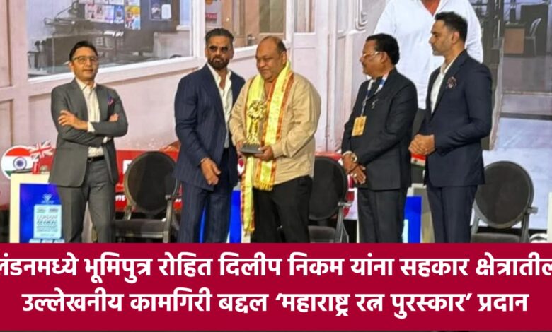 ЁЯТердмреНрд░реЗрдХрд┐рдВрдЧ : рд▓рдВрдбрдирдордзреНрдпреЗ рднреВрдорд┐рдкреБрддреНрд░ рд░реЛрд╣рд┐рдд рдирд┐рдХрдо рдпрд╛рдВрдирд╛ рд╕рд╣рдХрд╛рд░ рдХреНрд╖реЗрддреНрд░рд╛рддреАрд▓ рдЙрд▓реНрд▓реЗрдЦрдиреАрдп рдХрд╛рдордЧрд┐рд░реА рдмрджреНрджрд▓ тАШрдорд╣рд╛рд░рд╛рд╖реНрдЯреНрд░ рд░рддреНрди рдкреБрд░рд╕реНрдХрд╛рд░тАЩ рдкреНрд░рджрд╛рди