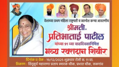 हॅलो जनता न्यूज, जळगाव : देशाच्या प्रथम महिला राष्ट्रपती व खान्देशच्या कन्या आदरणीय श्रीमती प्रतिभाताई पाटील यांच्या ९१ व्या वाढदिवसानिमित्त…